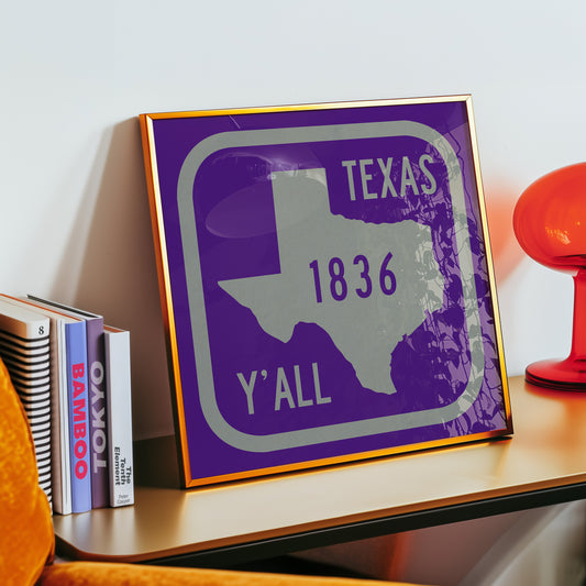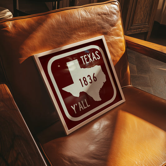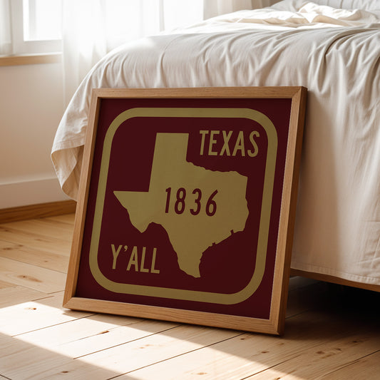 Texas Y'all Road Sign Art Print - Maroon & Gold