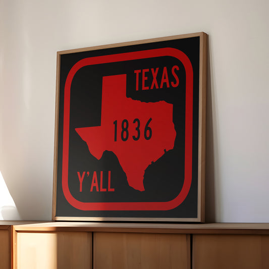 Texas Y'all Road Sign Art Print - Scarlet & Black