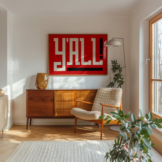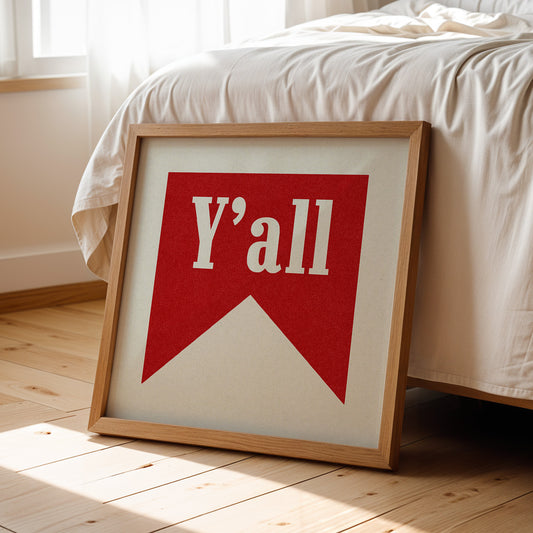 Y'all Typography Red and White Wall Art Print Poster Decor