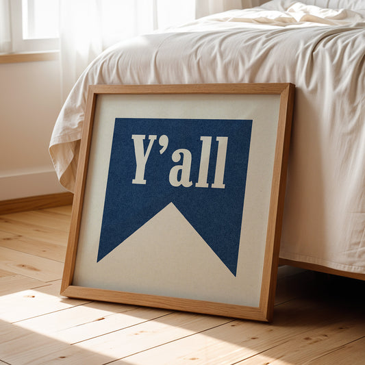 Y'all Typography Navy and White Wall Art Print Poster Decor