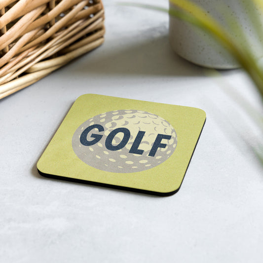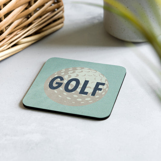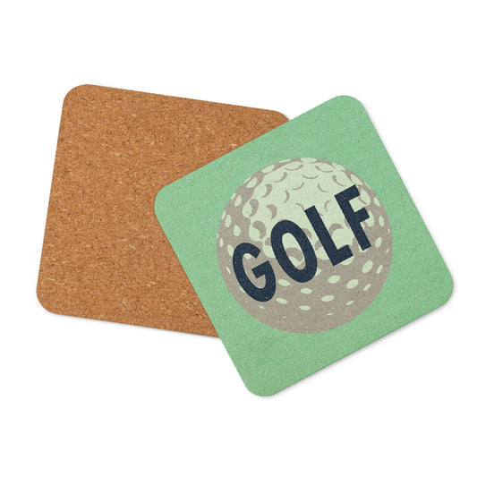 Golf Ball Drink Coaster Cork Back Square Coaster Retro Green