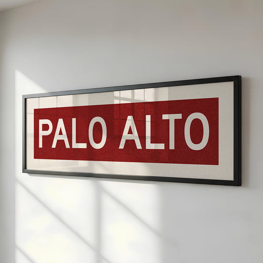 Framed Palo Alto Cardinal Red and White Bus Scroll