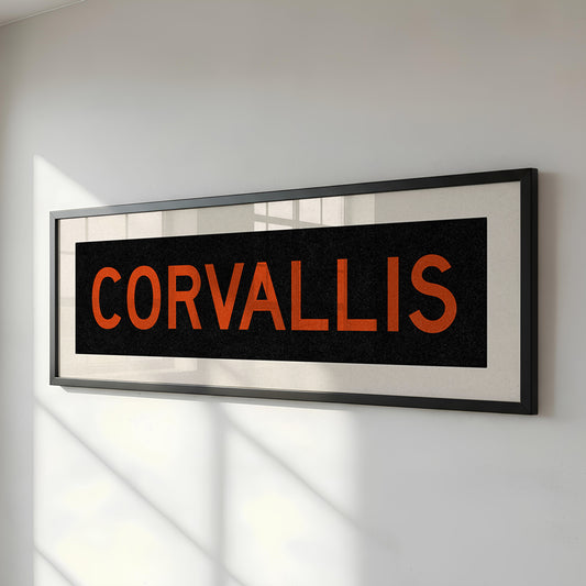 Framed Corvallis Orange and Black Bus Scroll