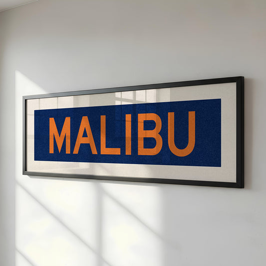 Framed Malibu Blue and Orange Bus Scroll