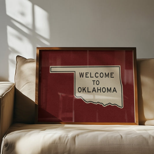 Welcome To Oklahoma Vintage Crimson Road Sign Art Print