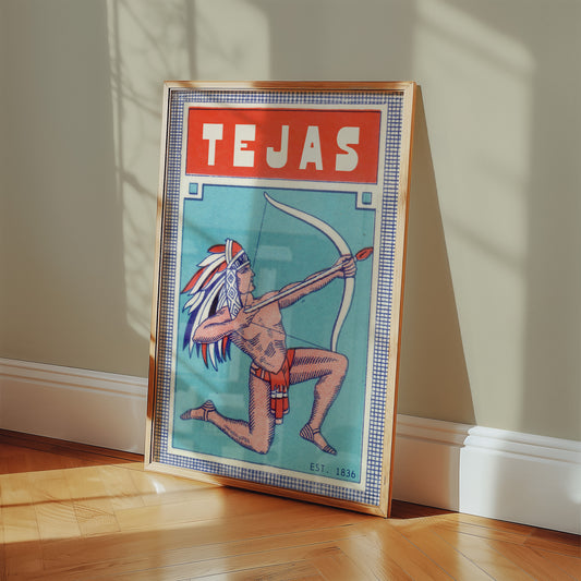 Tejas Bow and Arrow Native Vintage Art Print
