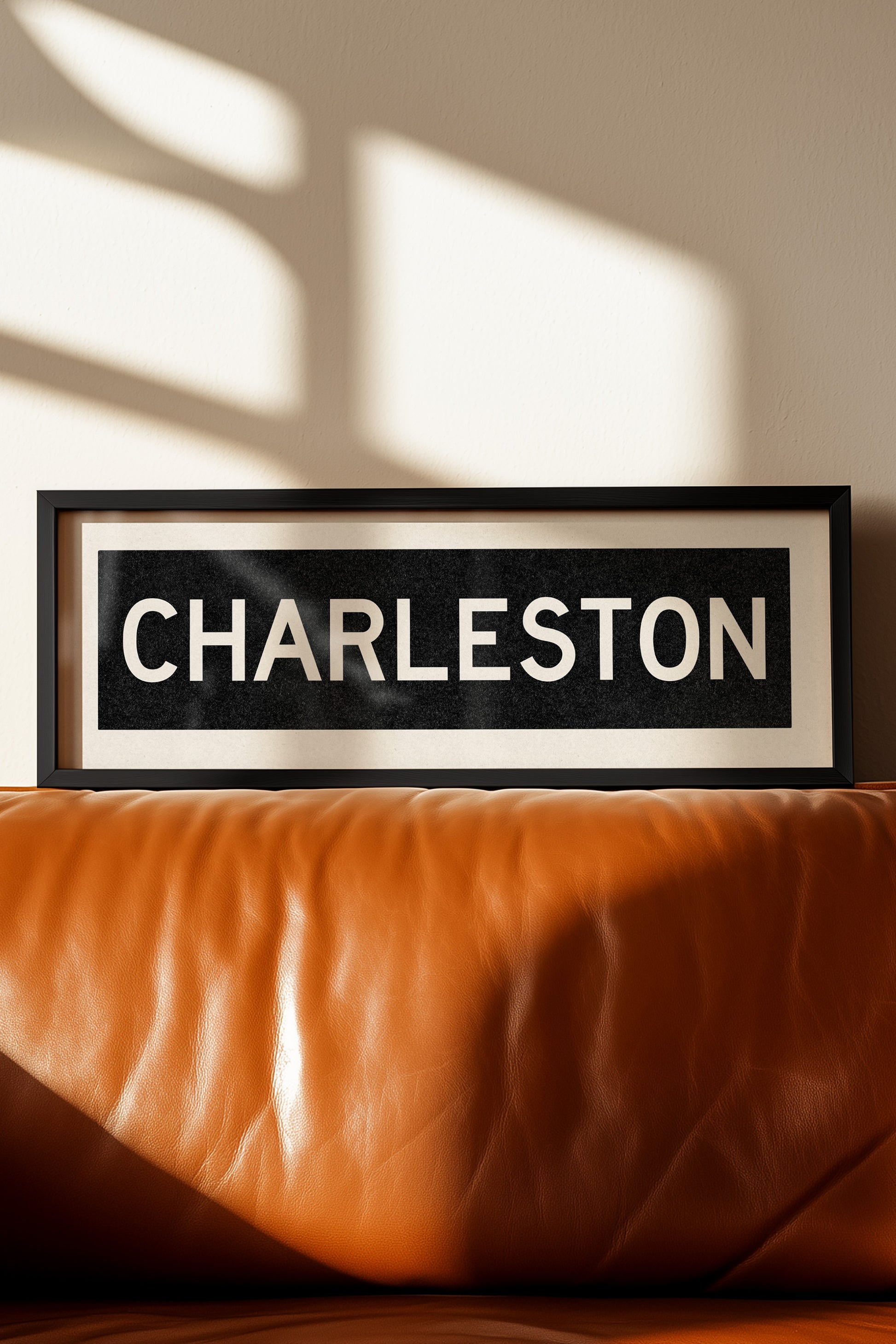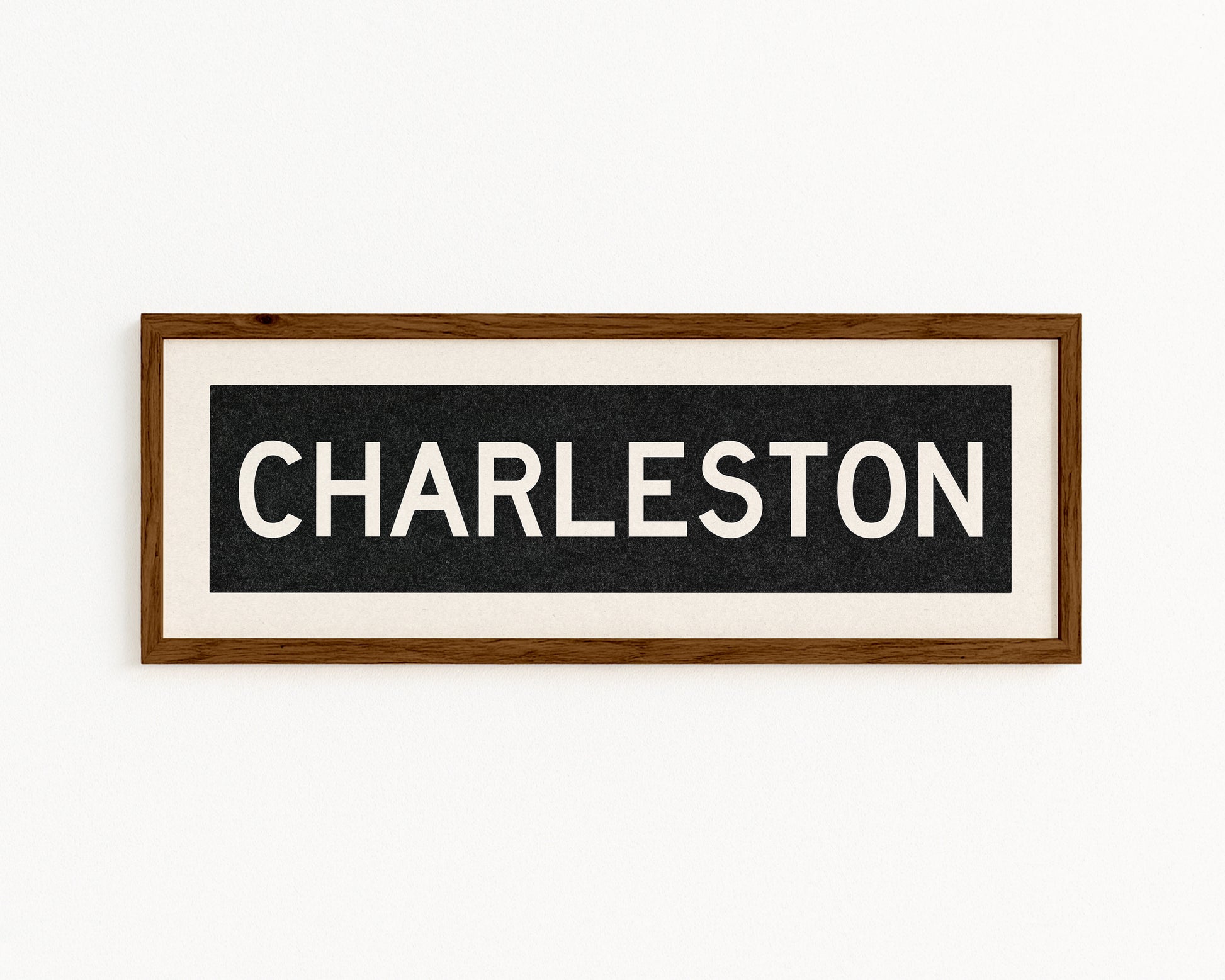 Framed black and white "CHARLESTON" vintage bus/train scroll sign art. Show off your love for Charleston, South Carolina with this classic and simple framed scroll sign. Great gift for the native or the newcomer. Perfect for above the door, in an office, game room or accent in a living area.