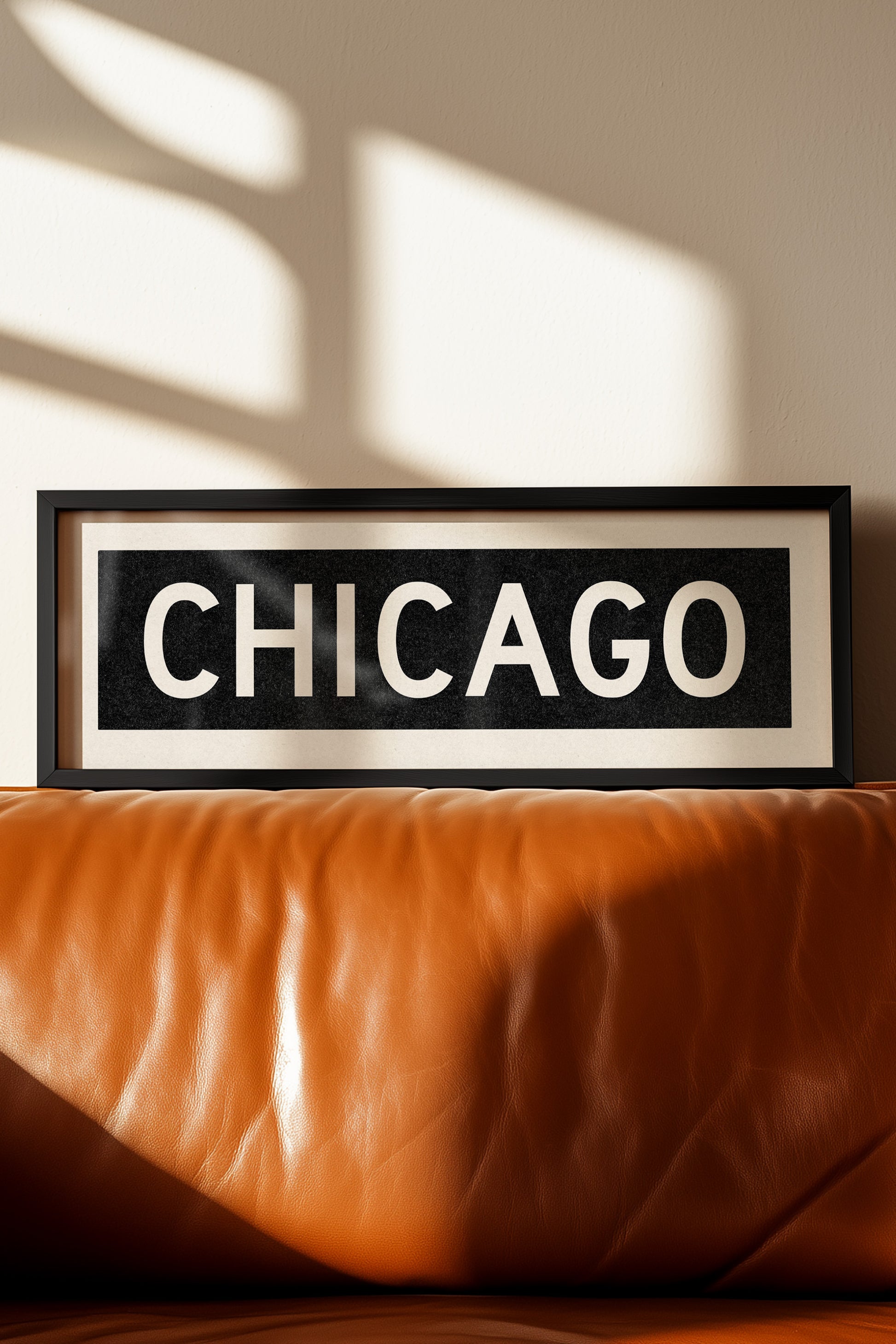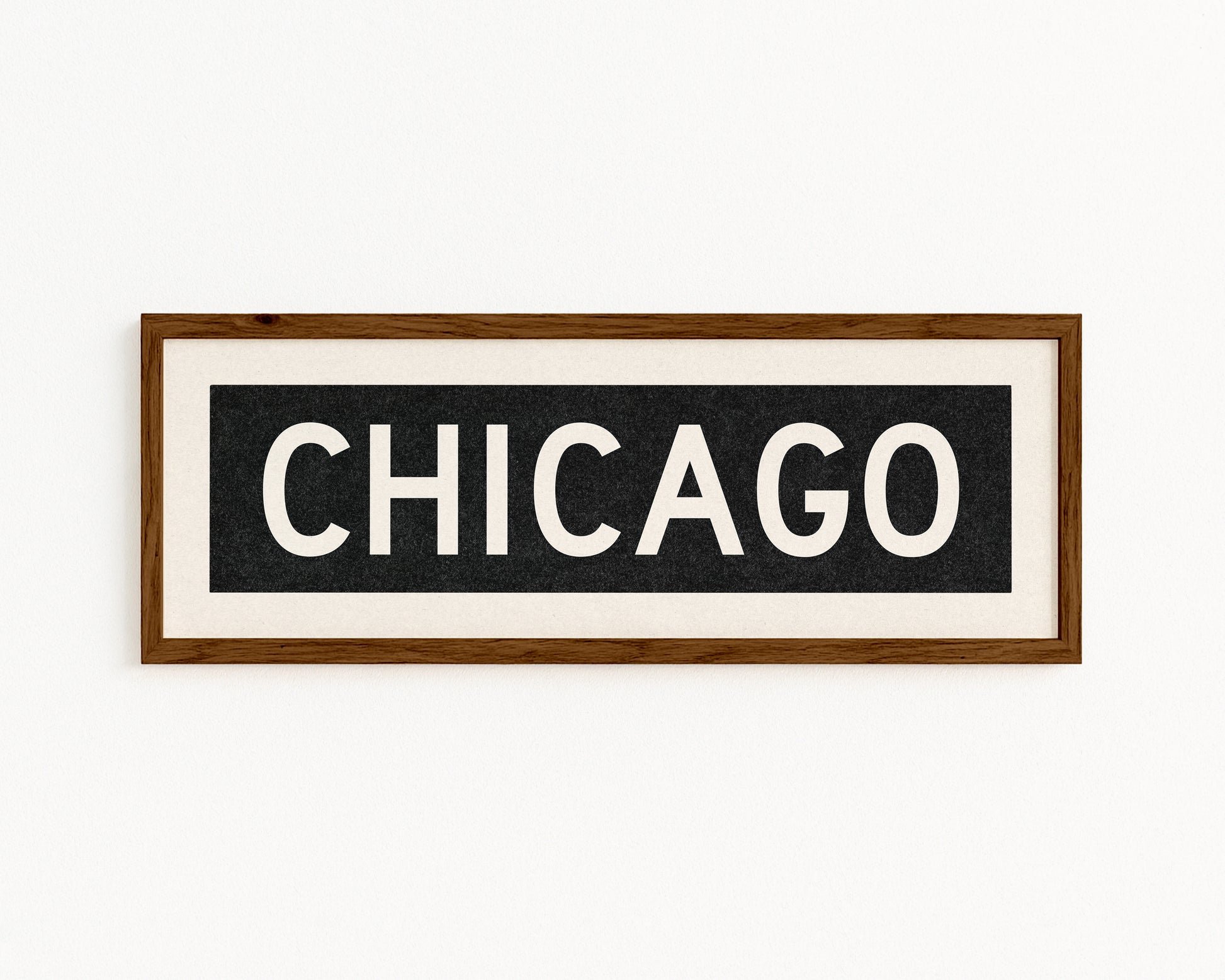 Framed black and white "CHICAGO" vintage bus/train scroll sign art. Show off your love for Chicago, Illinois with this classic and simple framed scroll sign. Great gift for the native or the newcomer. Perfect for above the door, in an office, game room or accent in a living area.