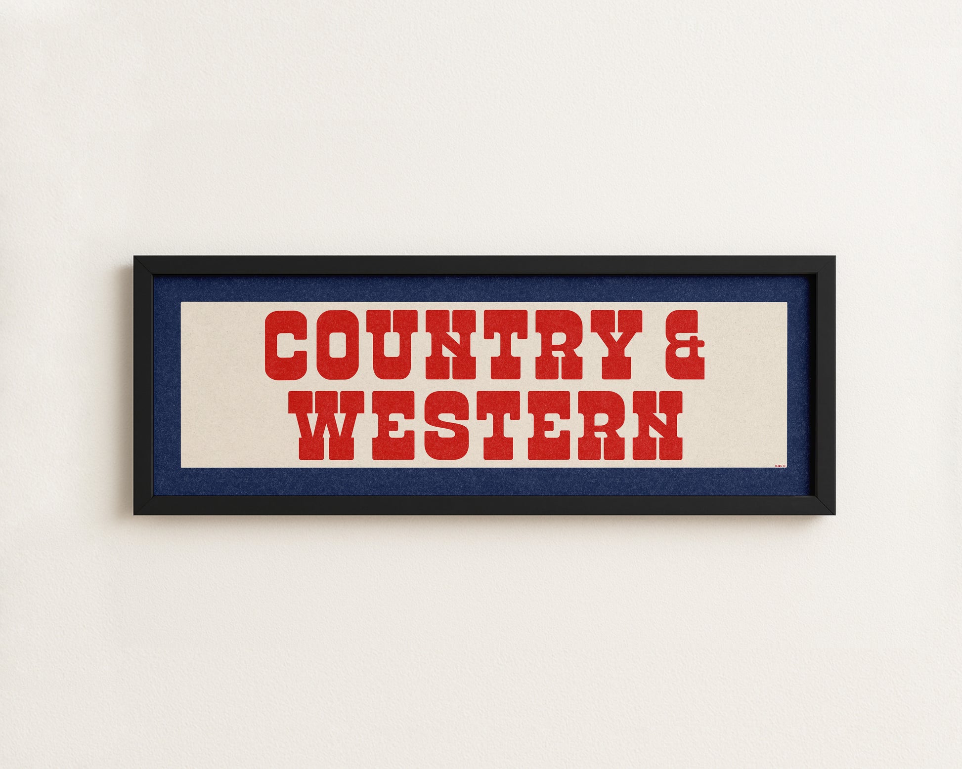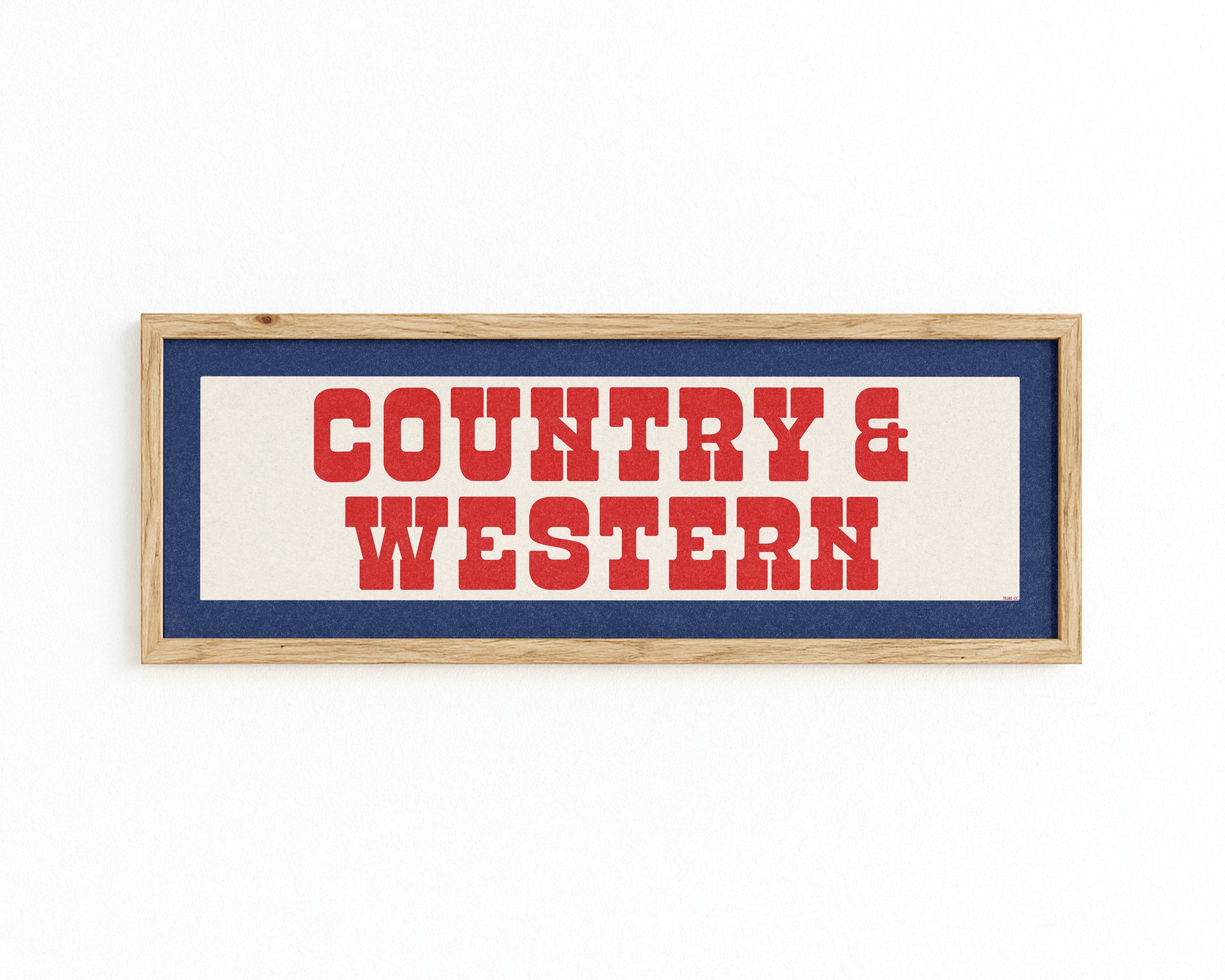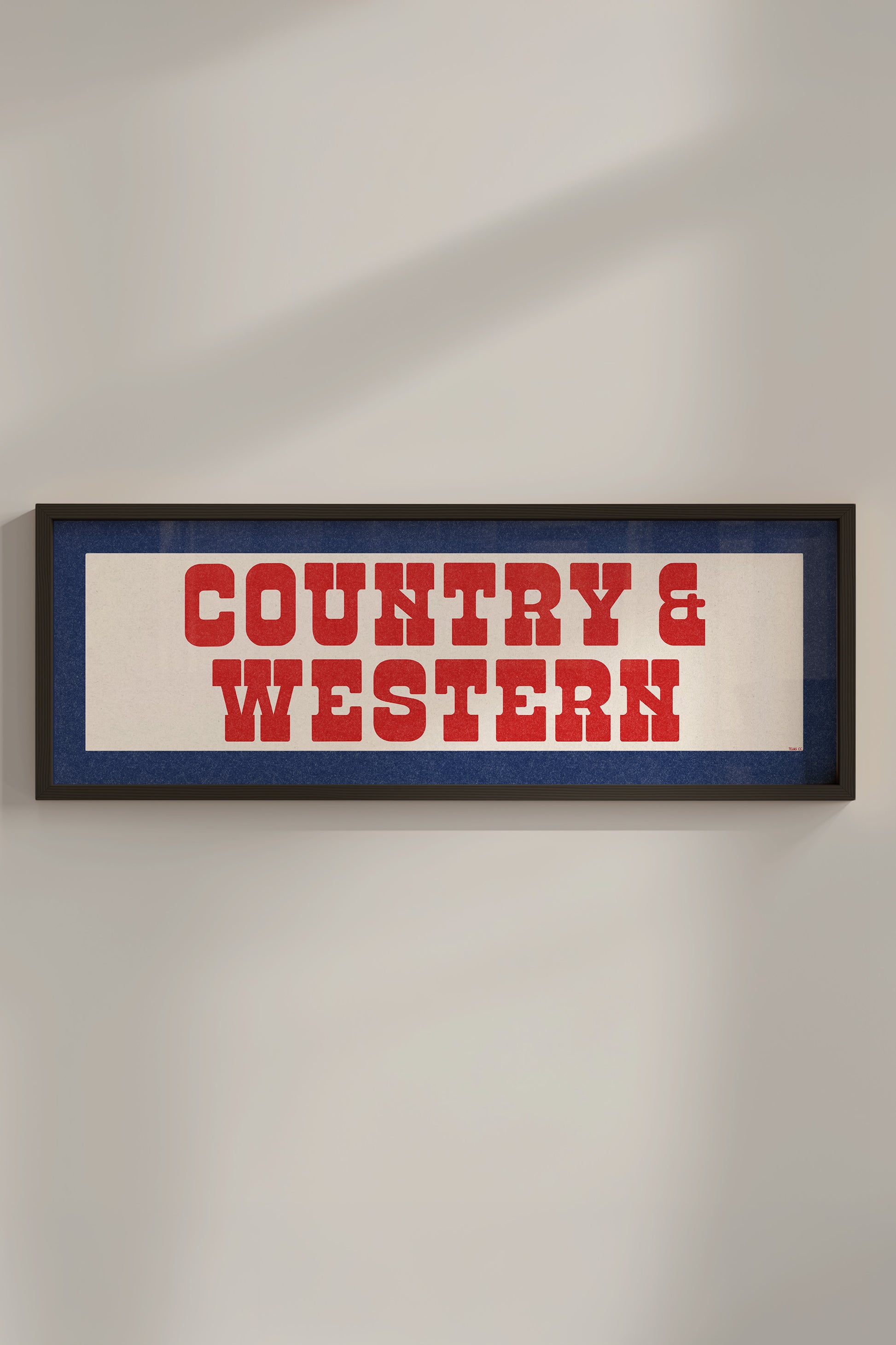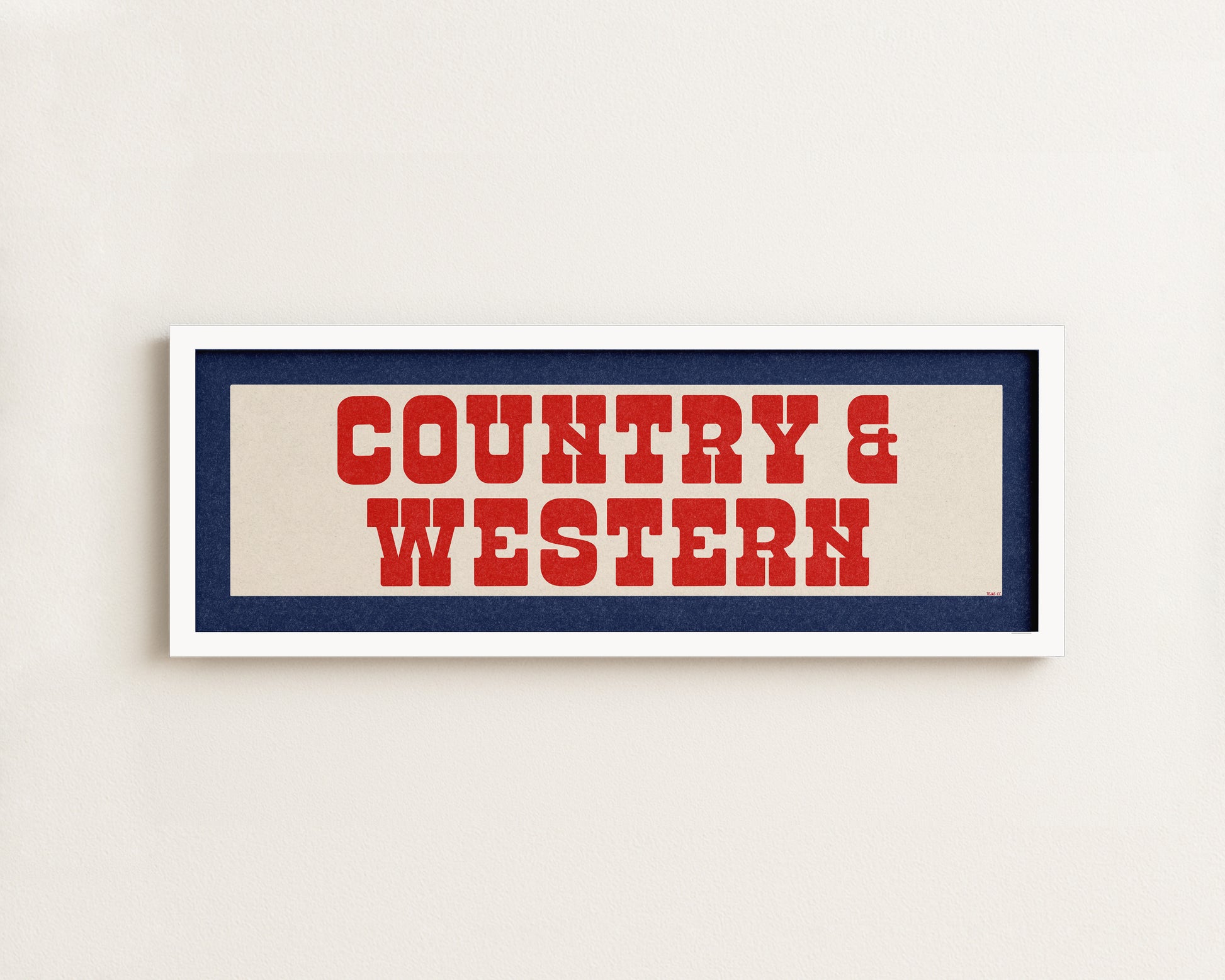Framed COUNTRY & WESTERN Sign White & Red / Blue Art Print