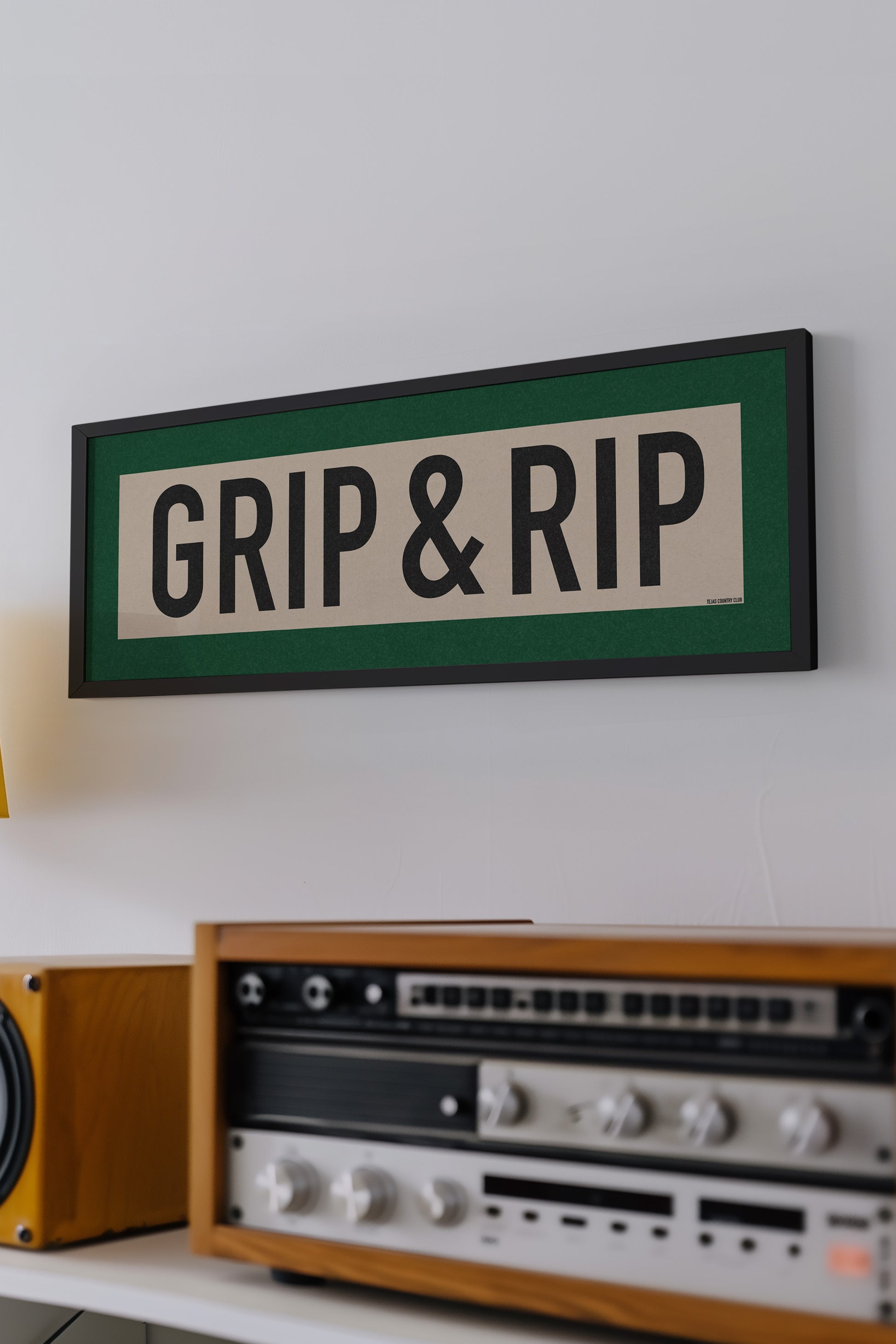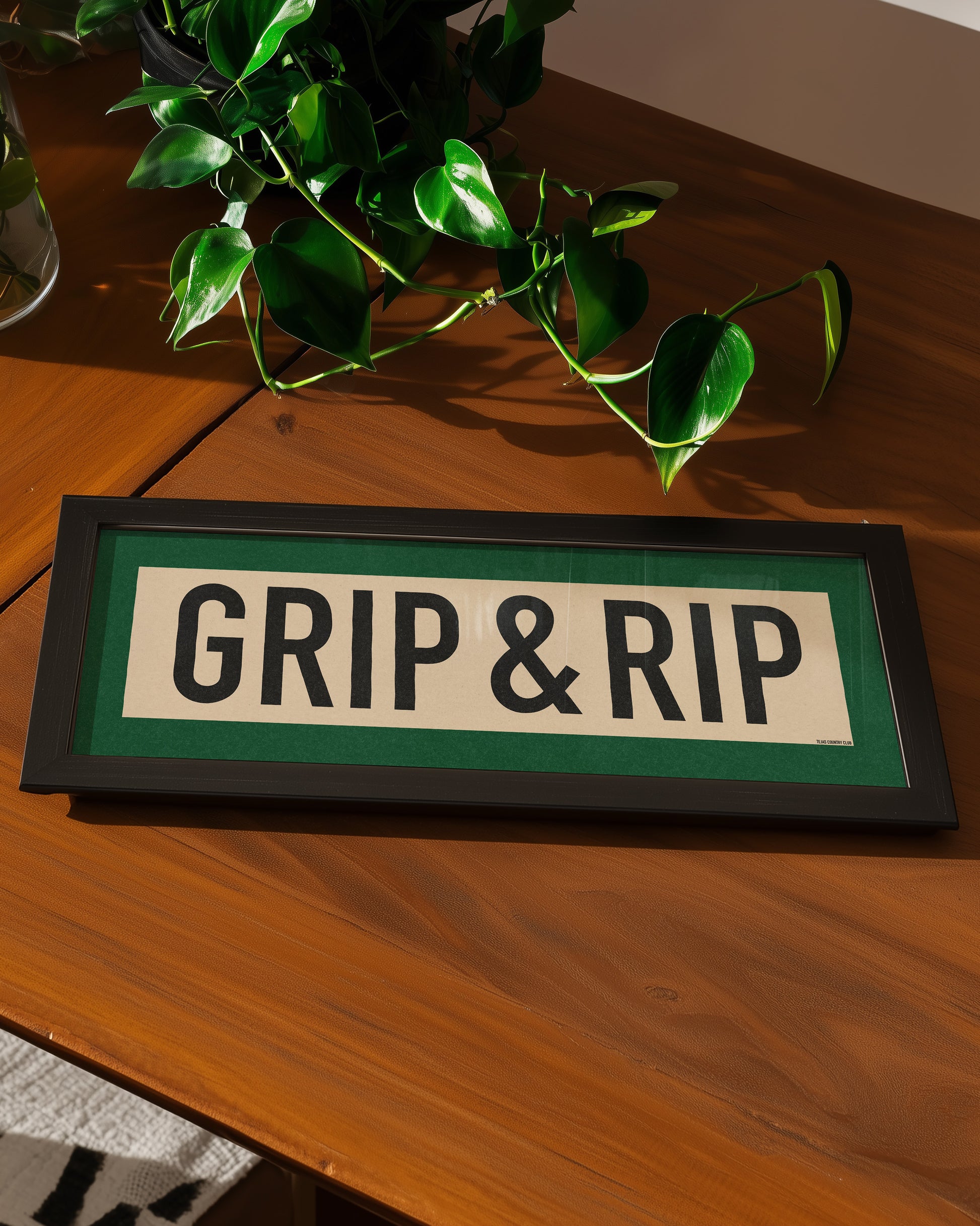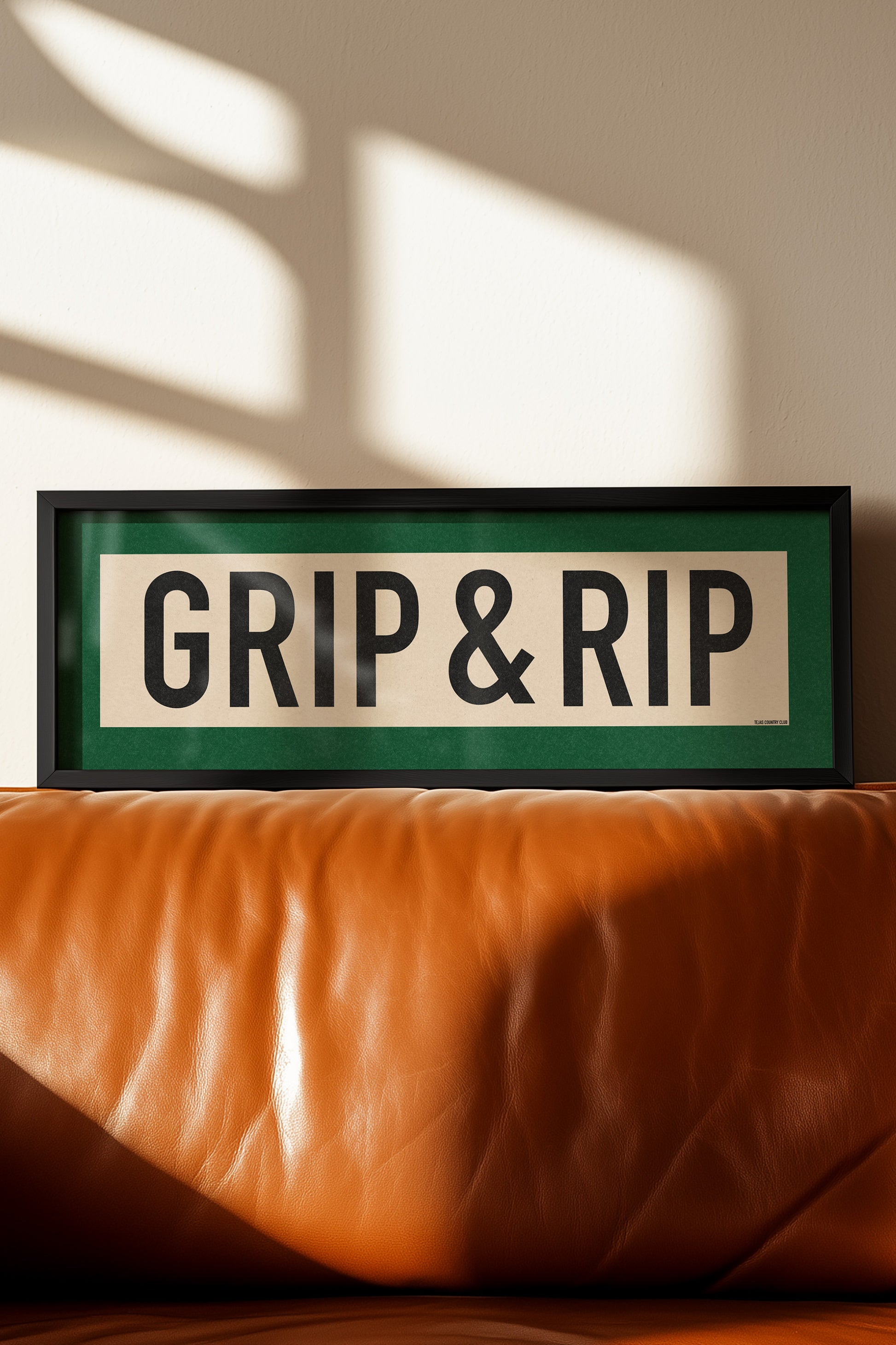 Framed green and off white "GRIP & RIP" vintage scroll sign art. Show off your love for addressing the ball, getting a grip and letting it fly during a round of 18 holes with this classic and simple framed scroll sign. Perfect for above the door, in an office, game room or accent in a living area.