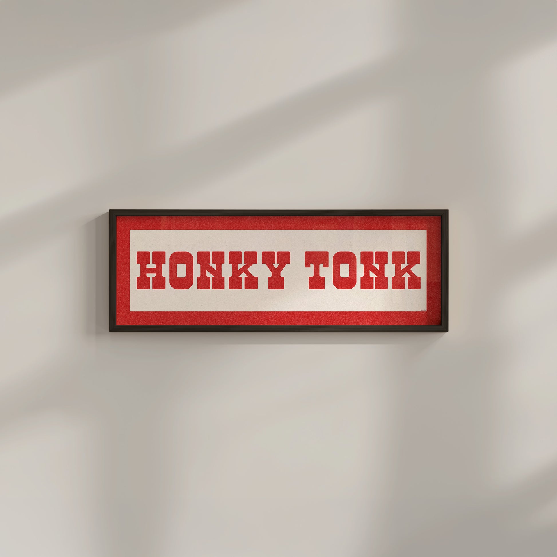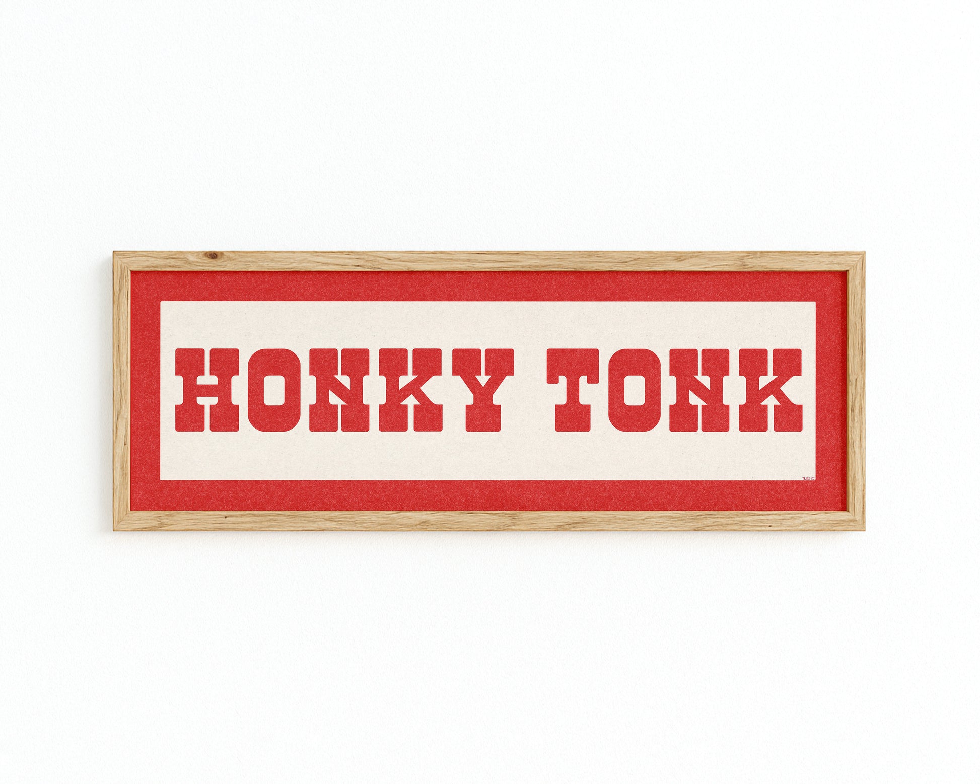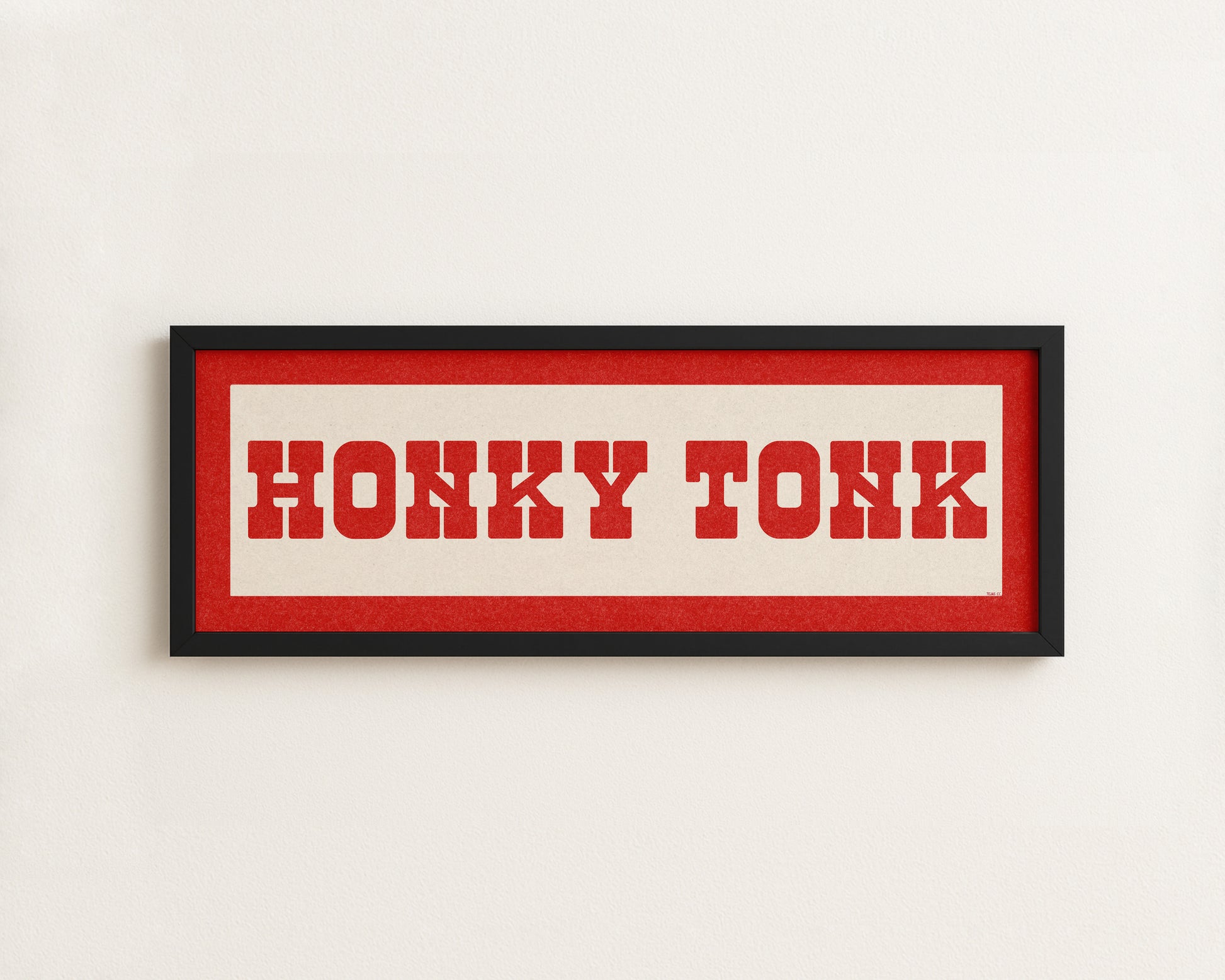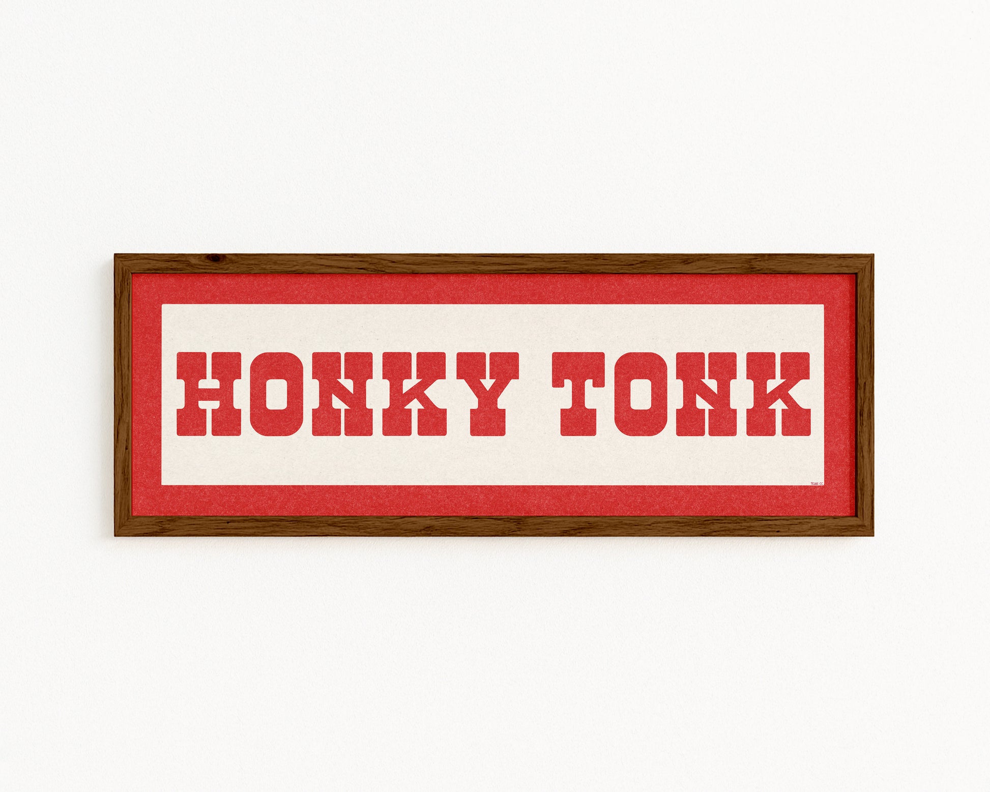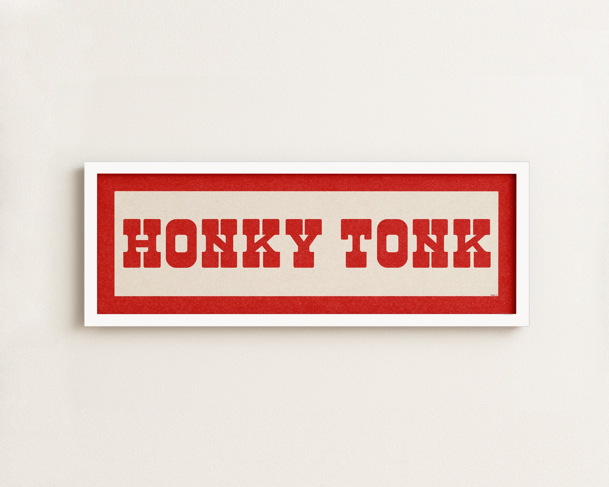 HONKY TONK! This framed white and red typography sign will add that splash of color and Southern / Western charm that your wall has been missing. These are perfect additions for gallery walls or over the door pieces. The print comes framed and you have 4 color options to choose from.