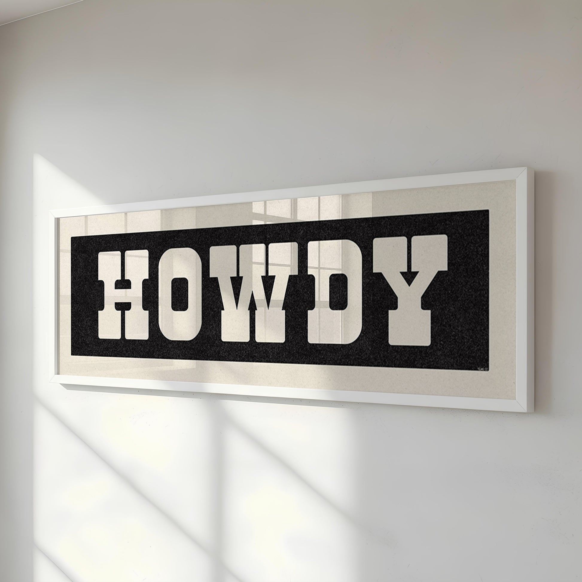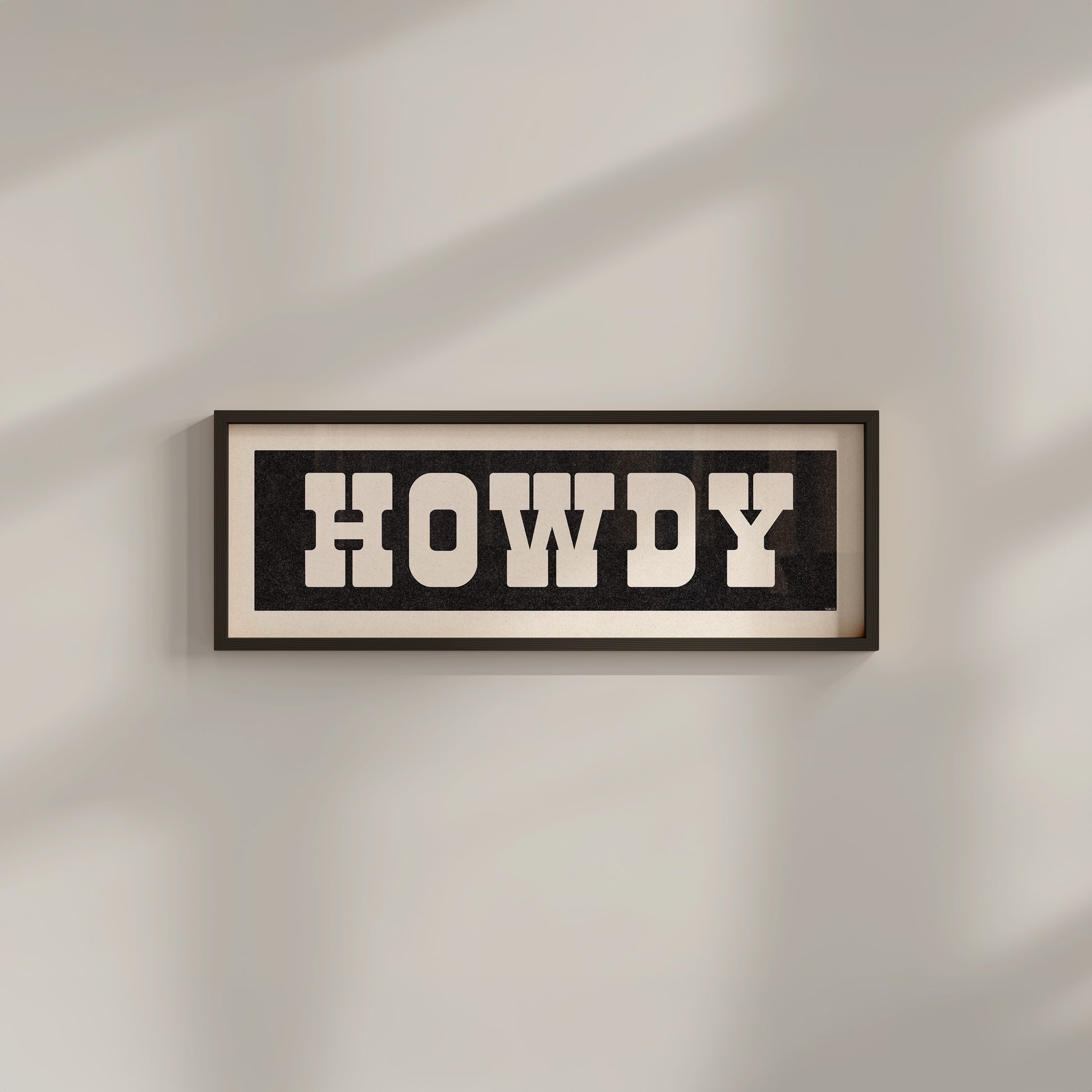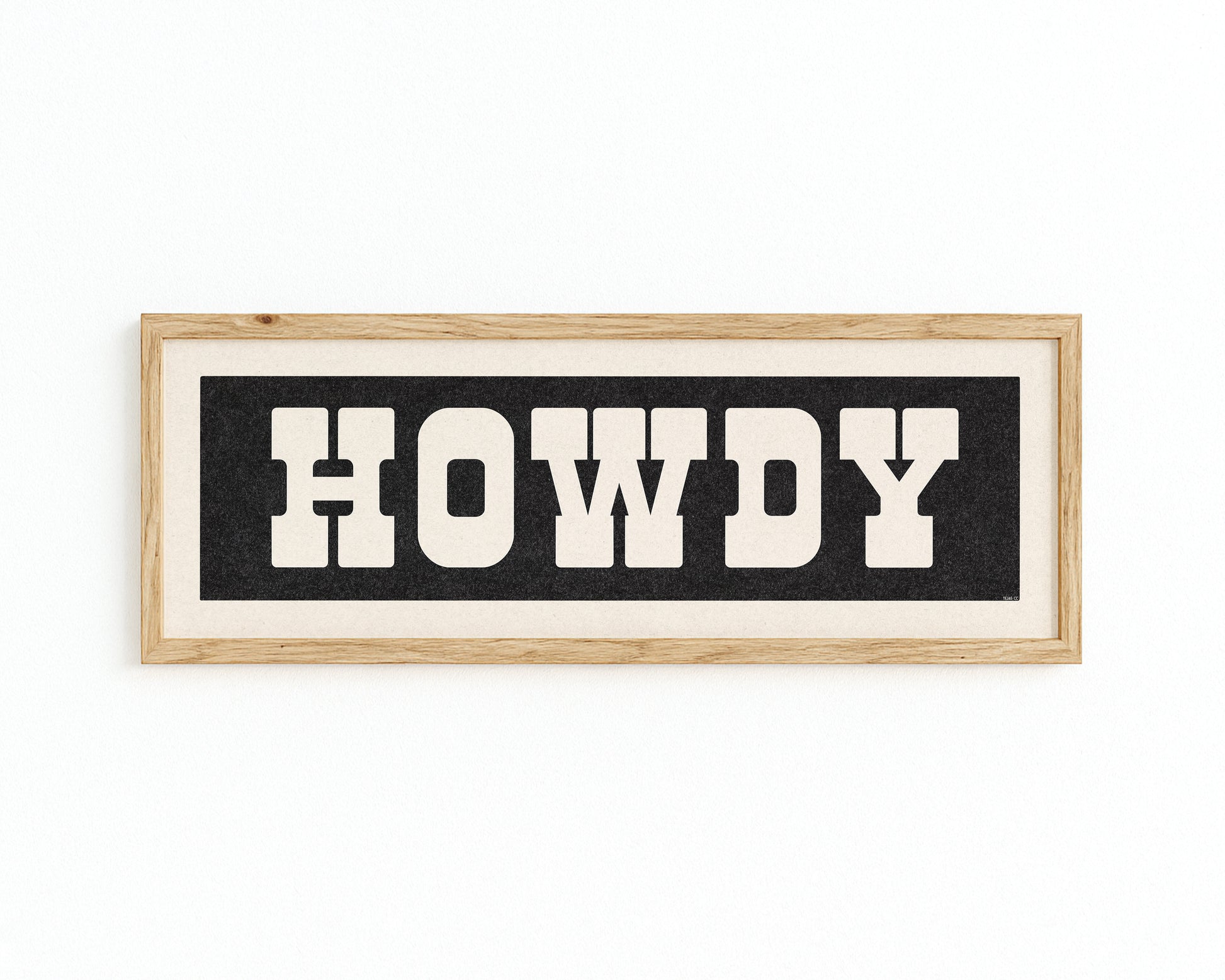 HOWDY! This framed black and white typography sign will add that splash of color and Southern / Western charm that your wall has been missing. These are perfect additions for gallery walls or over the door pieces. The print comes framed and you have 4 color options to choose from.