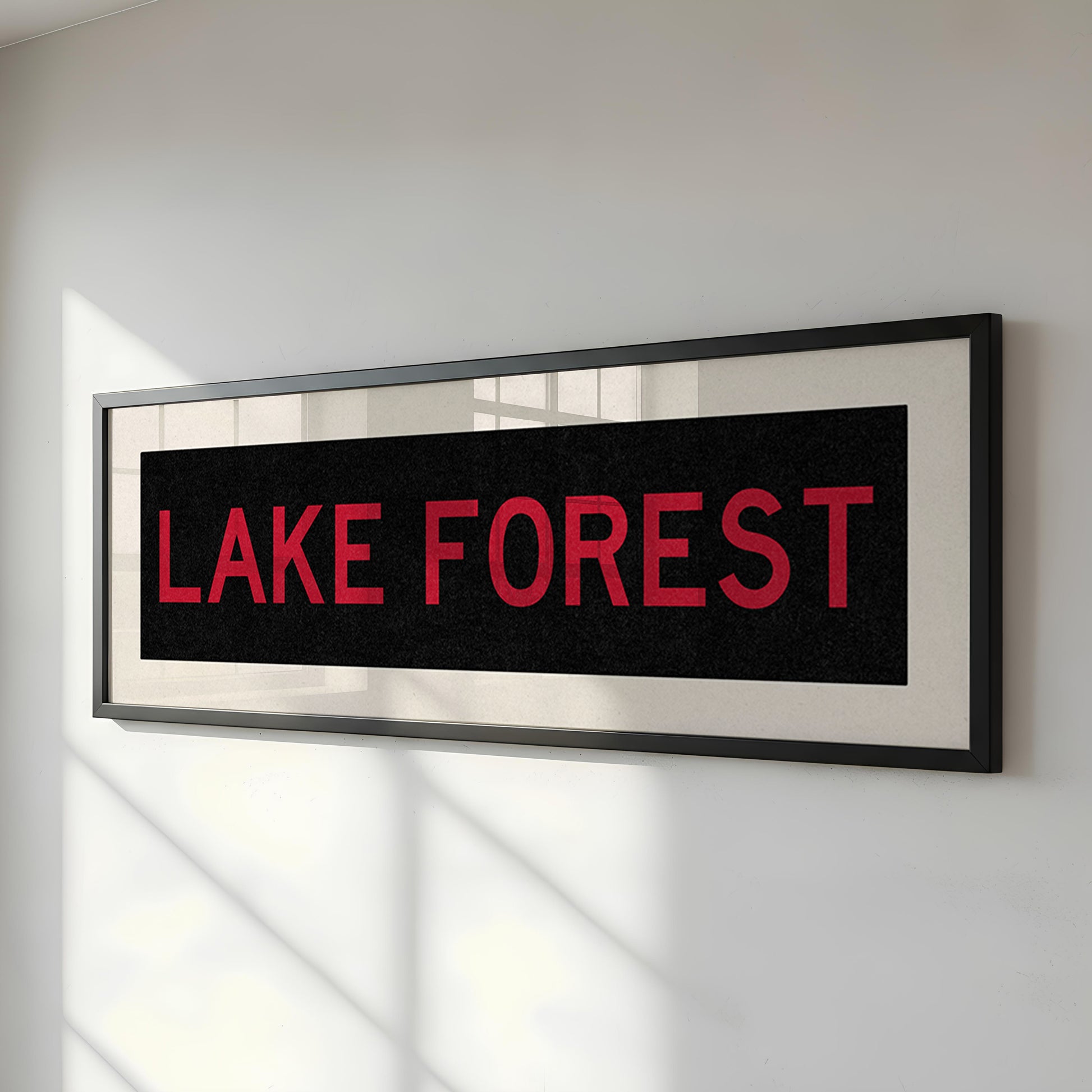Framed Lake Forest Red and Black Bus Scroll