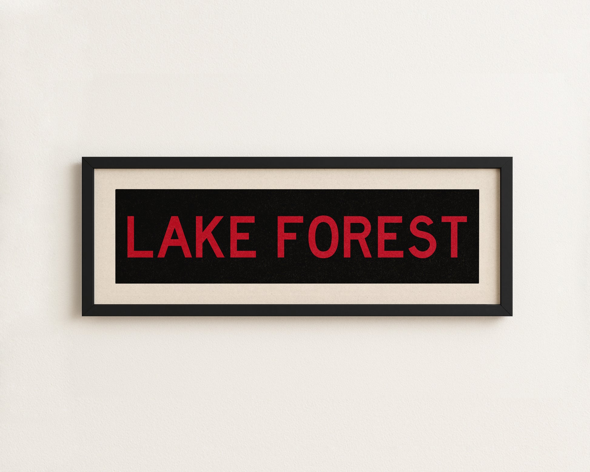 Framed green and white "LAKE FOREST" vintage bus/train scroll sign art. Show off your love for Lake Forest, Florida with this classic and simple framed scroll sign. Perfect for above the door, in an office, game room or accent in a living area.