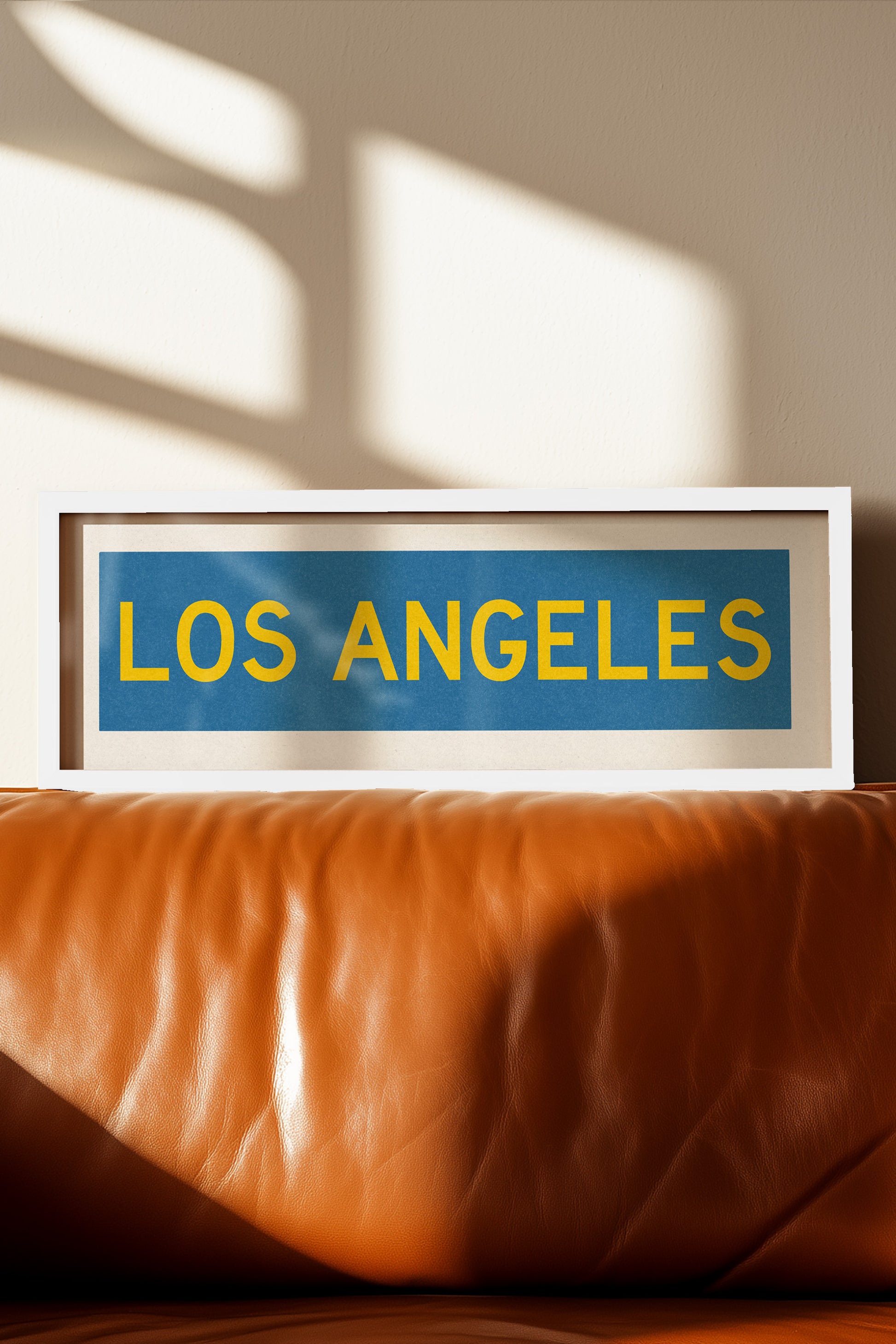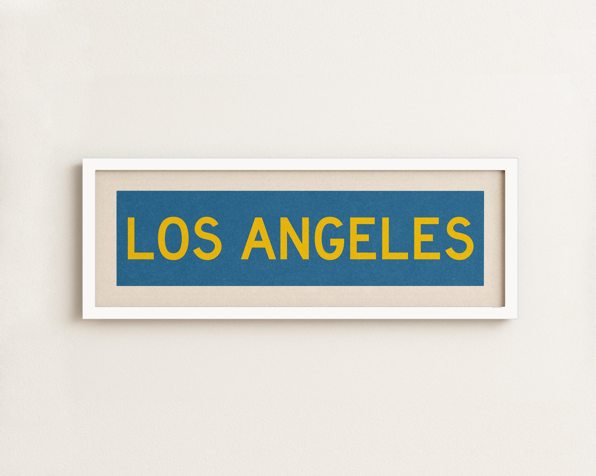 Framed blue and gold "LOS ANGELES" vintage bus/train scroll sign art. Show off your love for Los Angeles, California with this classic and simple framed scroll sign. Perfect for above the door, in an office, game room or accent in a living area.