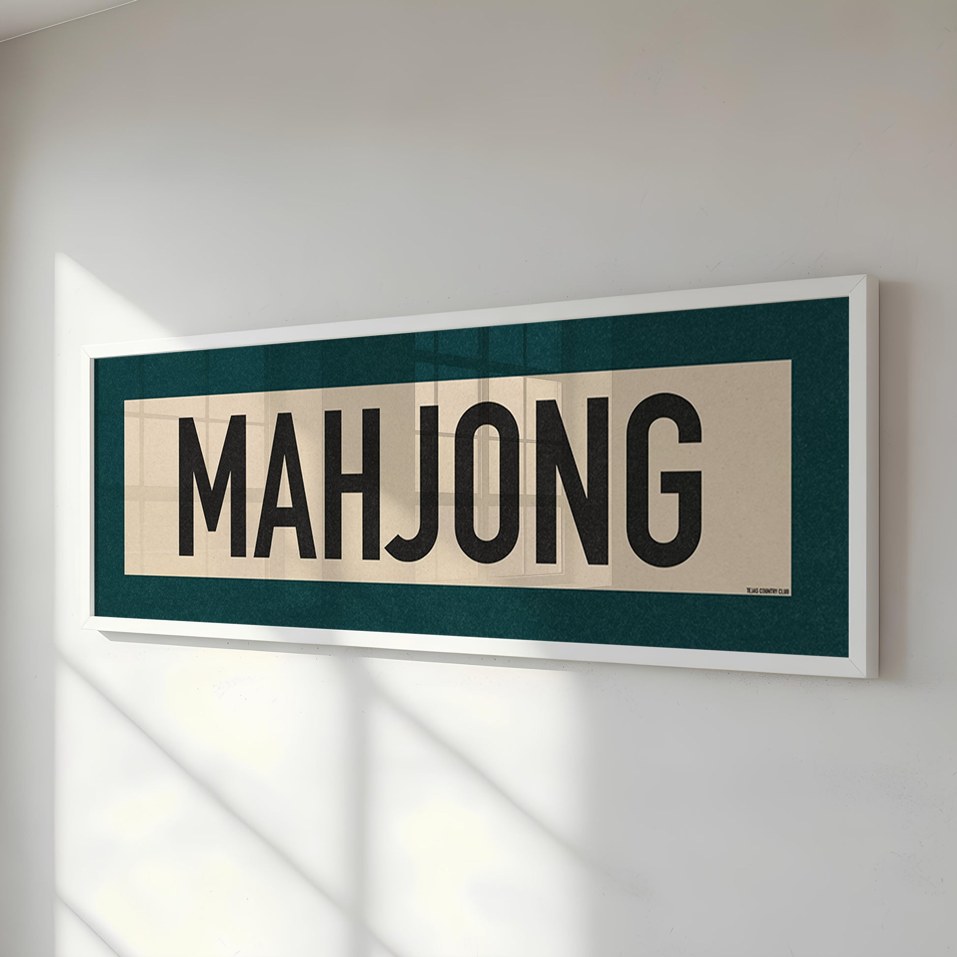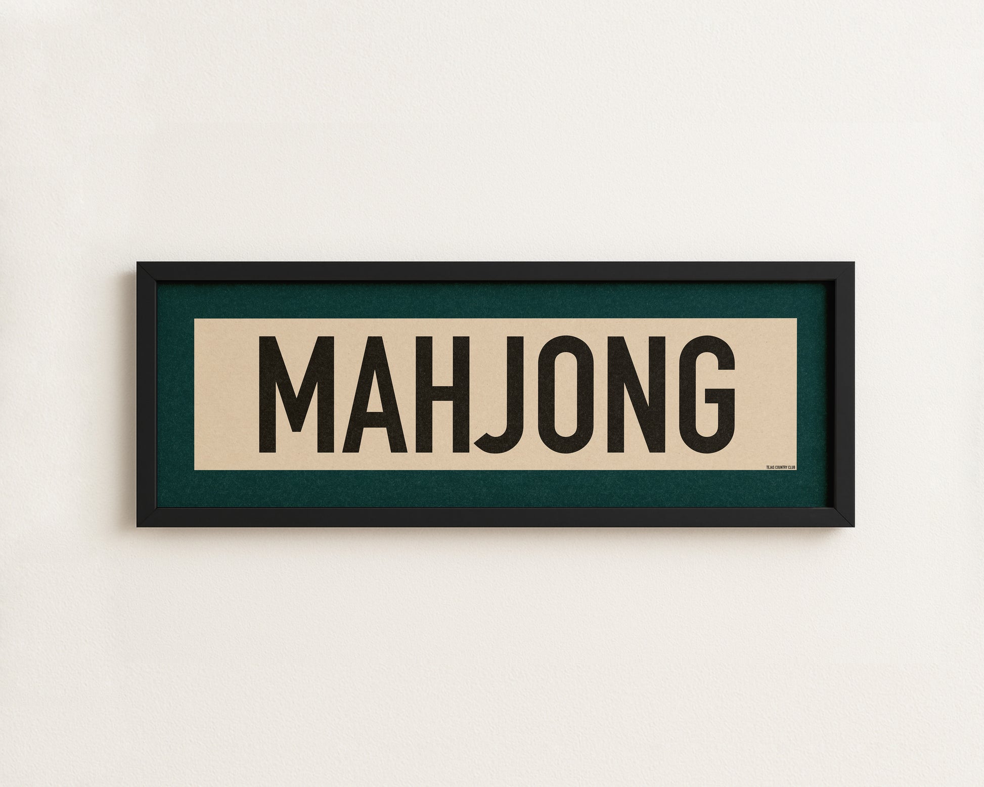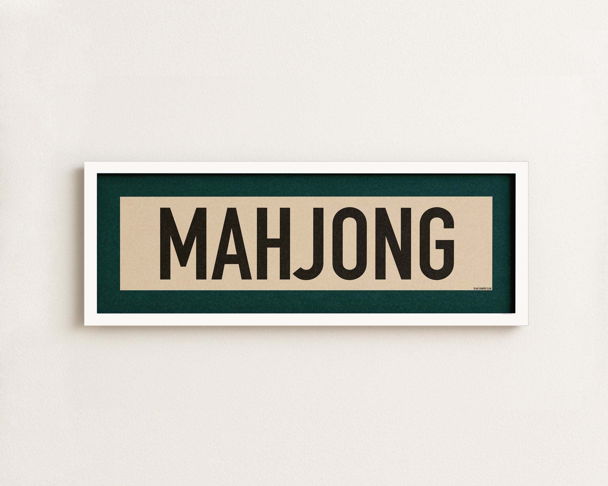 Framed teal and off white "MAHJONG" vintage scroll sign art. Show off your love for the great game of Mahjong. Liven up that wall with this classic and simple framed scroll sign. for above the door, in an office, game room or accent in a living area.