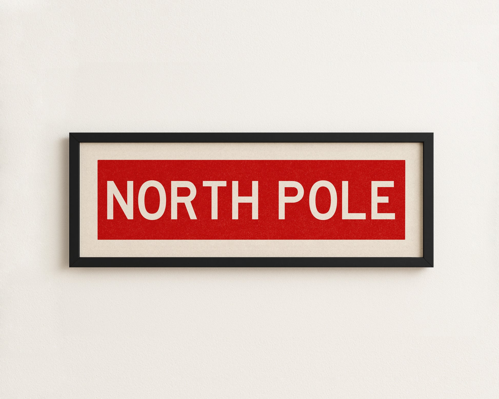 Decorate for Christmas in style with this classy framed bus scroll sign that says. "NORTH POLE" This version comes in Christmas red & white.