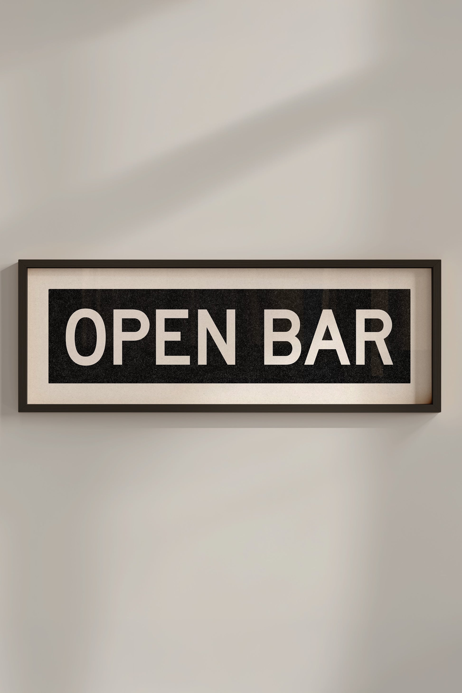 Framed OPEN BAR" vintage bus/train scroll sign art. Show off your love for an Open Bar with this classic and simple framed scroll sign. Perfect for above the door, in an office, above the bar, game room or accent in the kitchen.