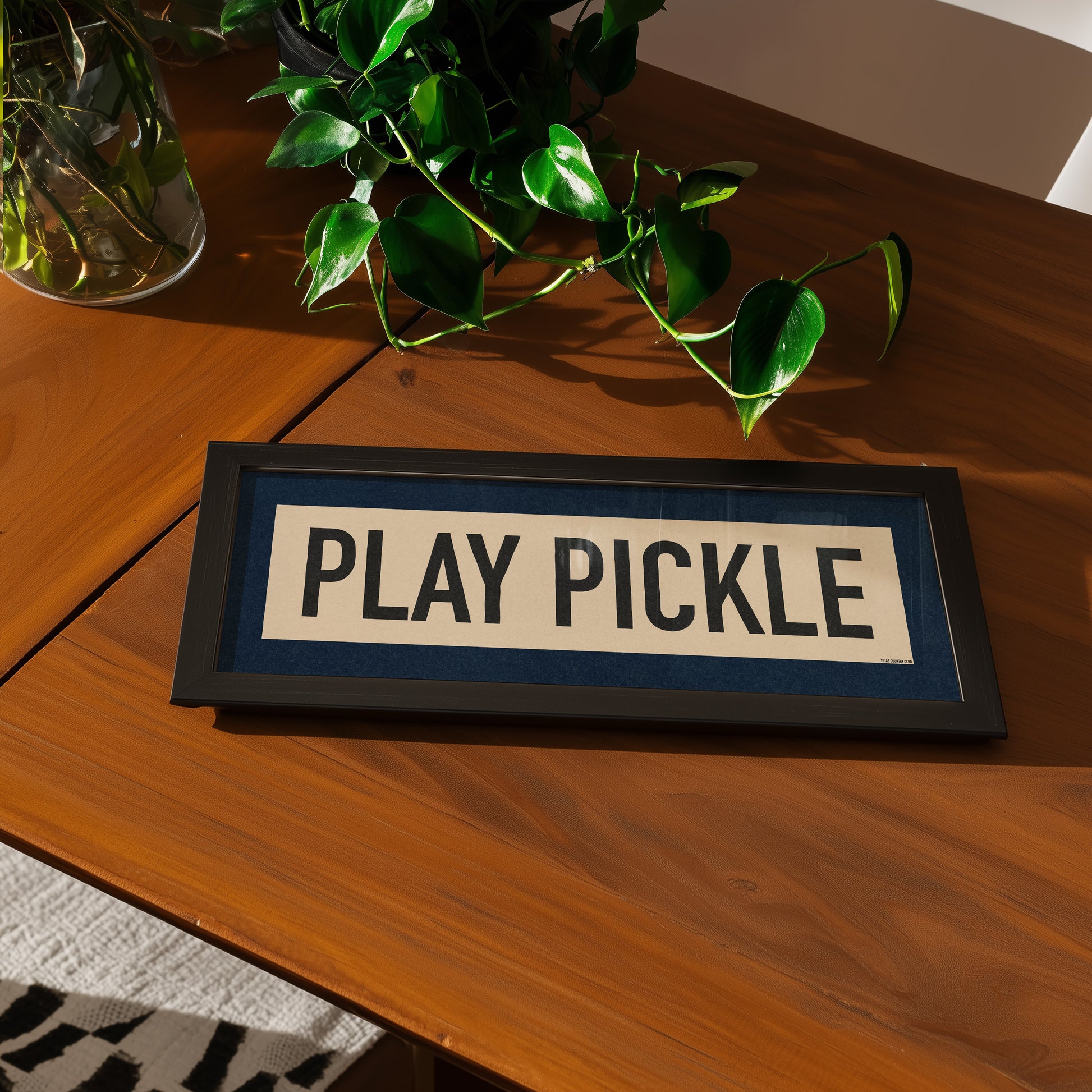 Framed Play Pickle Pickleball Art Scroll Sign