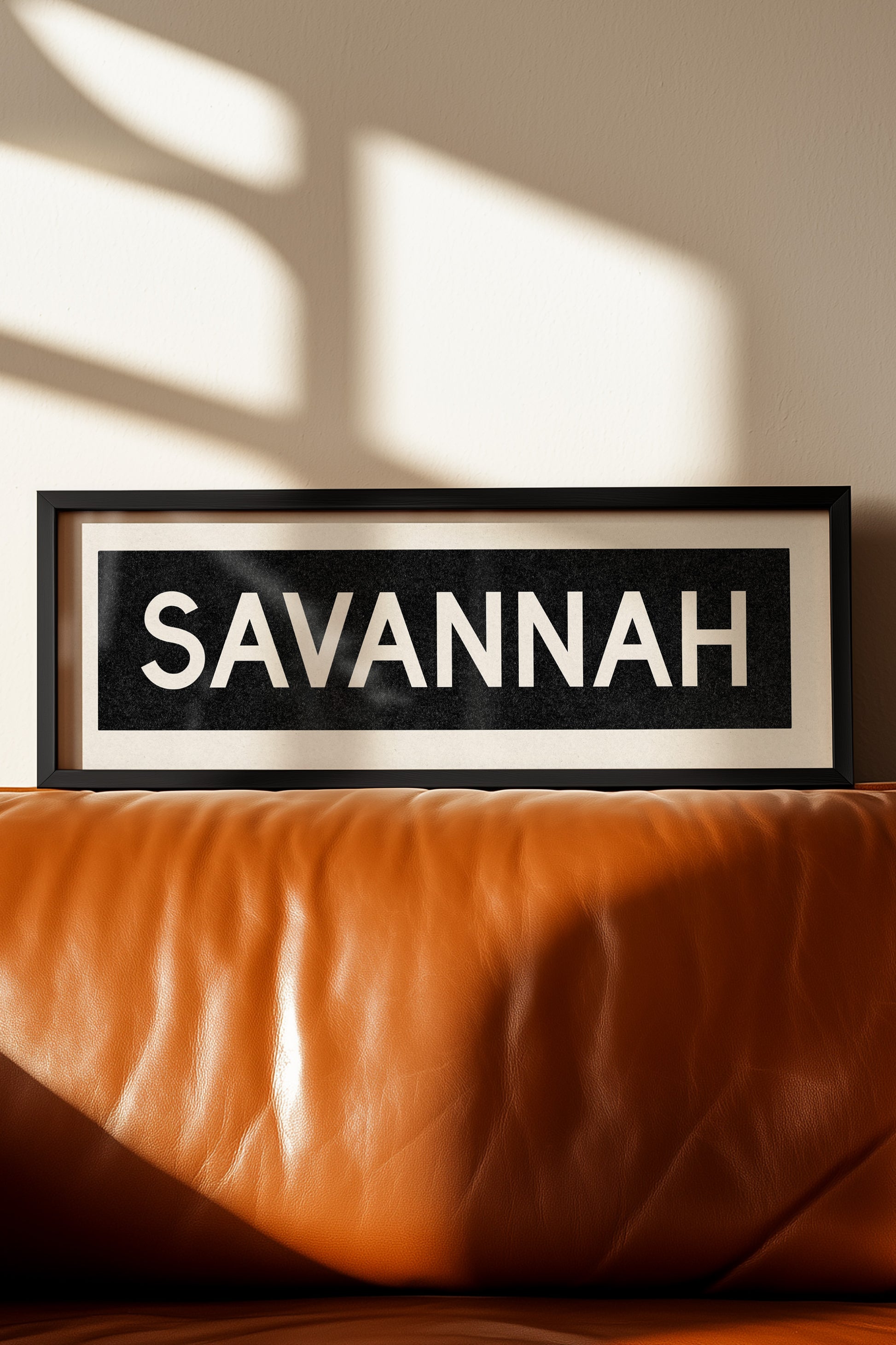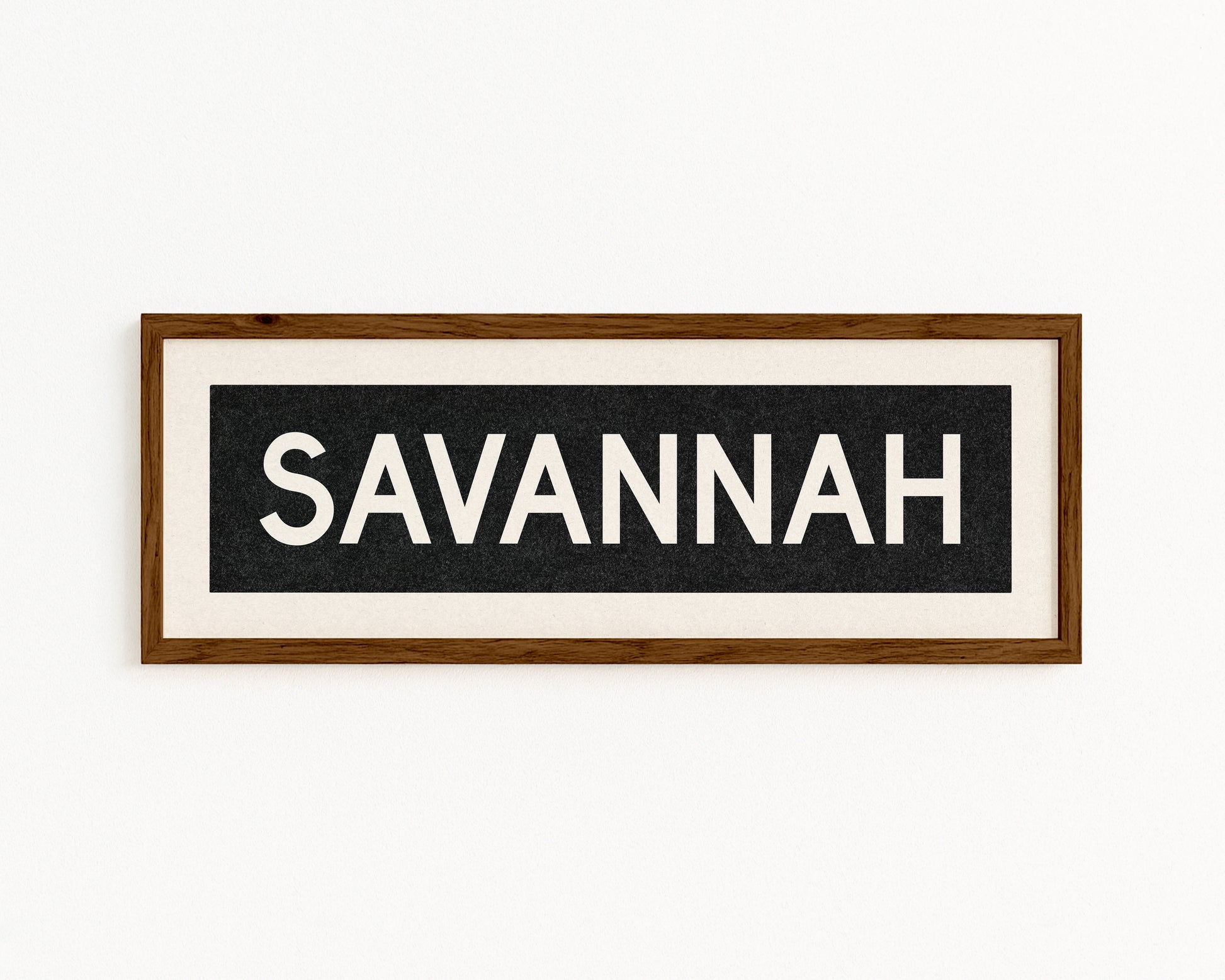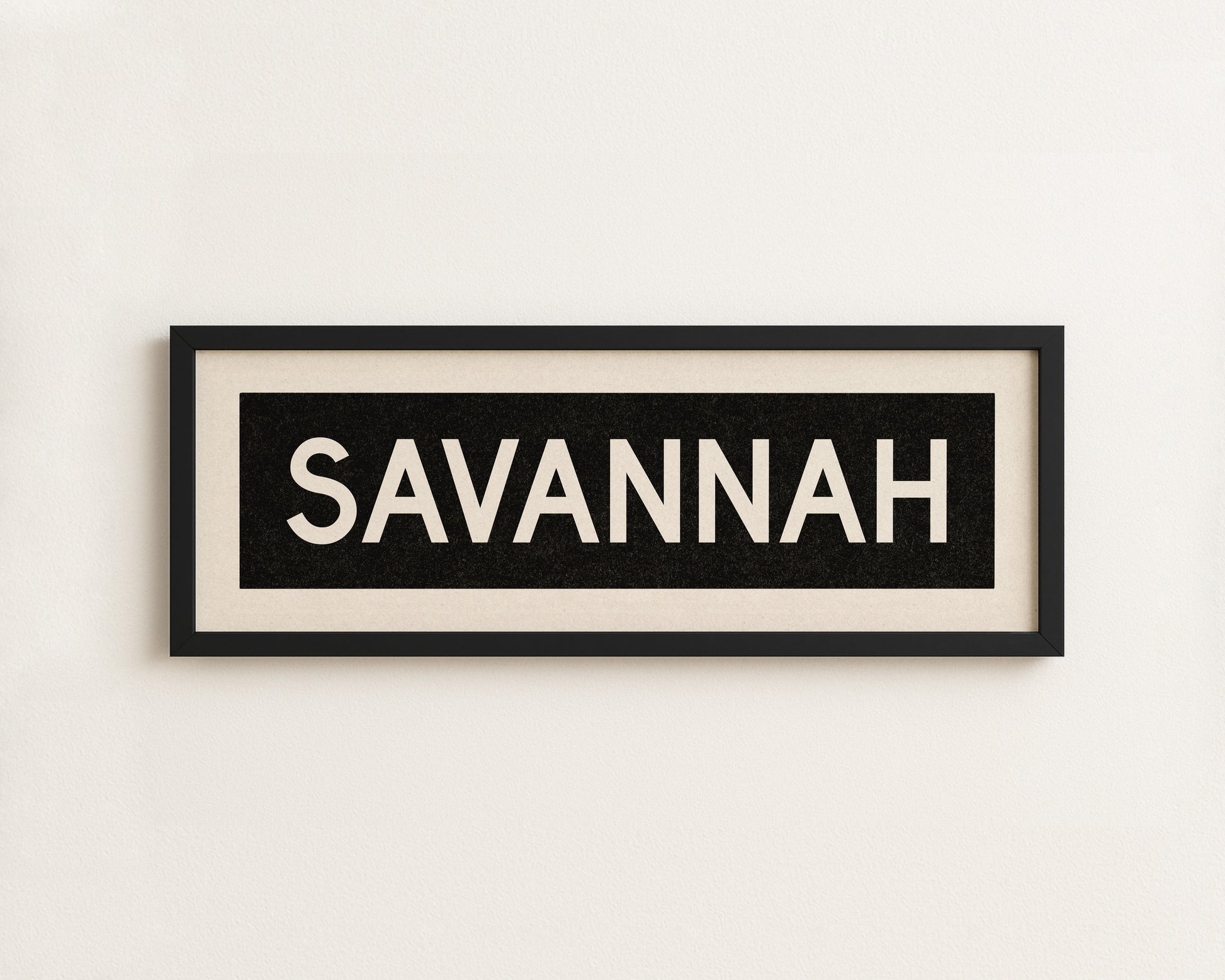 Framed black and white "SAVANNAH" vintage bus/train scroll sign art. Show off your love for Savannah, Georgia with this classic and simple framed scroll sign. Great gift for the native or the newcomer. Perfect for above the door, in an office, game room or accent in a living area.