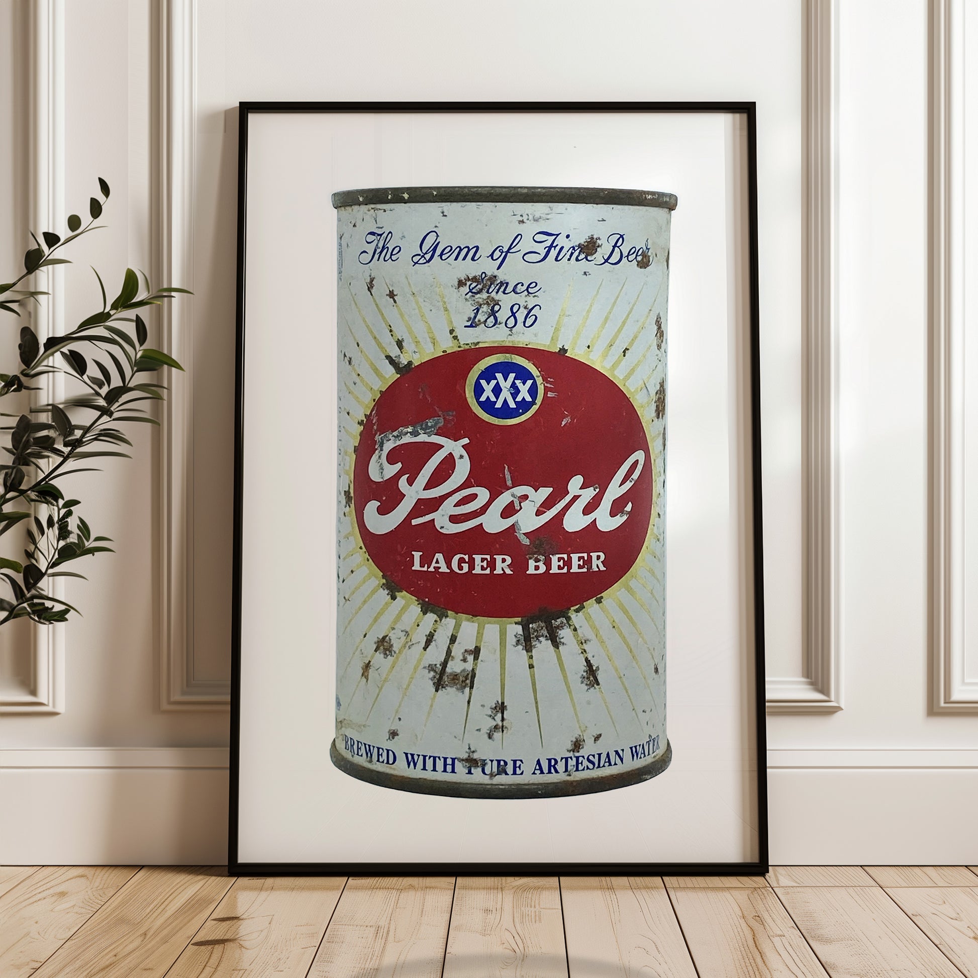 Beer Can Wall Art Pearl Beer Photography Print Beer Art Poster Bar Art Print Texas Wall Decor Gameroom Artwork Vintage Pearl Beer
